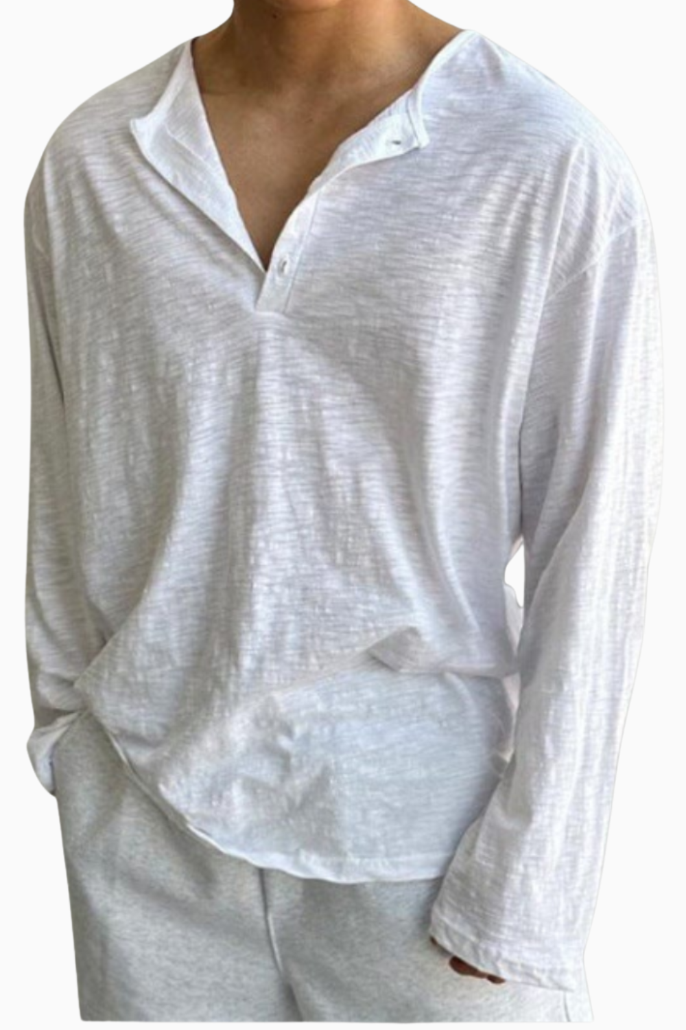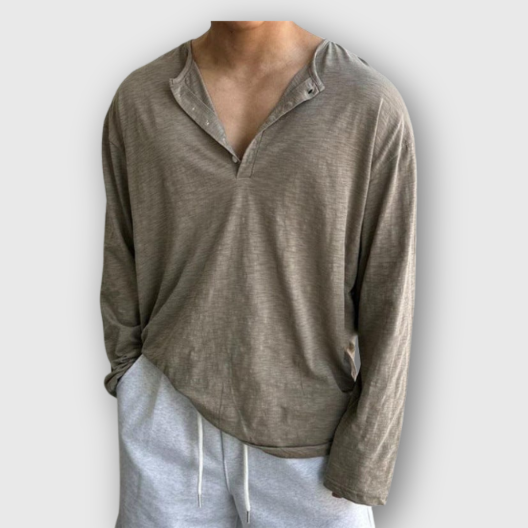 Crafted from supremely soft, premium cotton, it offers breathability and comfort that lasts all day. The relaxed fit and buttoned V-neck add a refined touch to your casual wardrobe — simple, versatile, and endlessly wearable.